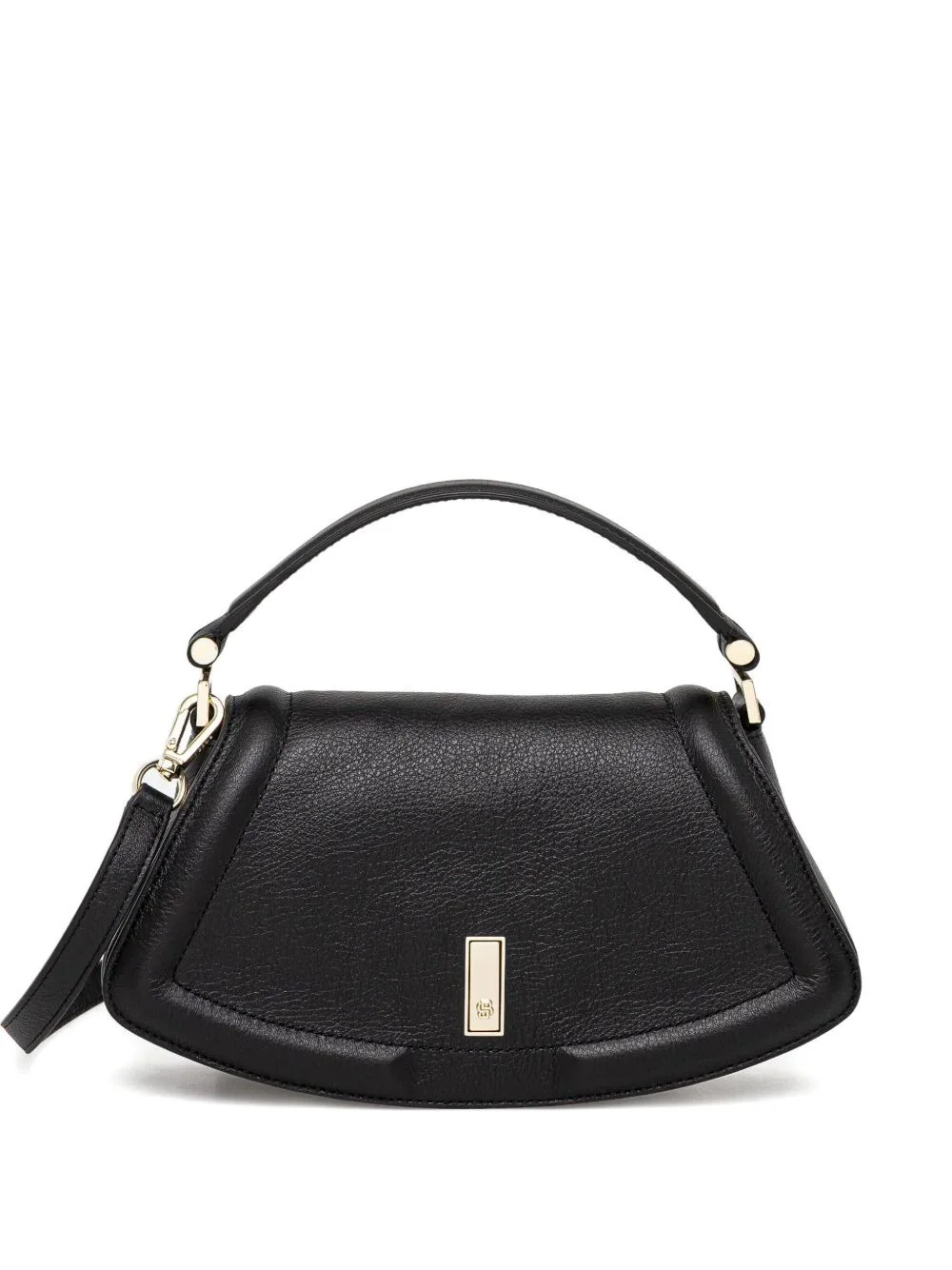 Ariell curved top-handle satchel Highlights - Black - Curved shape - Top handle - Detachable shoulder strap - Gold-tone hardware - Embossed logo Imported Composition Outer: Calf Leather 100% SIZE & FIT Measurement DEPTH 2.36 in(6 cm) HEIGHT 5.51 in(14 cm) WIDTH 10.03 in(25.5 cm)