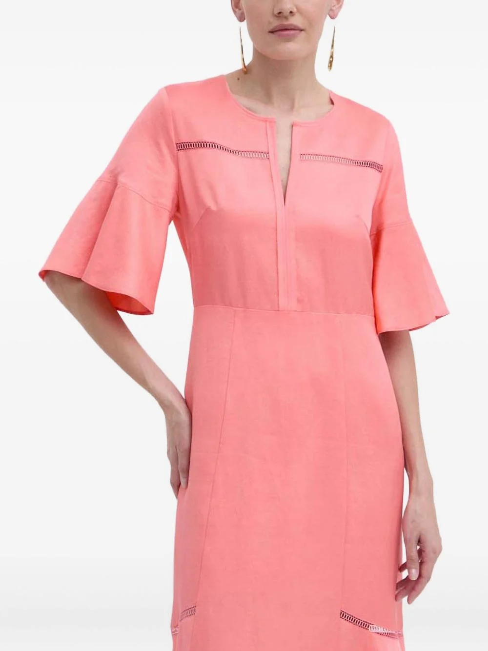 bell-sleeve dress Highlights Imported Composition Outer: Viscose 59%, Linen/Flax 41% Lining: Cotton 100%