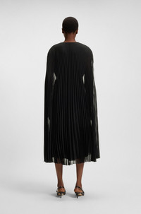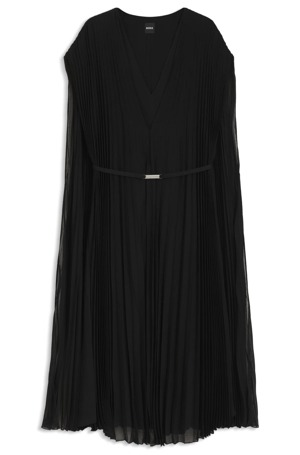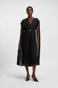 SIZE AND FIT The model wears a size 4 and is 5'10" tall with a, 31" chest, 24" waist and 35" hips. DETAILS Dennya - 50548050 Featuring a waist-defining belt, this distinctive BOSS Womenswear dress has a transparent overlay in lightweight crinkle chiffon. Elegant V neckline. Long length. Regular fit Neckline: V-neck Fastening top: Belted closure Sleeveless Fully lined QUALITY & CARE INSTRUCTIONS Do Not Wash Quality: 100% Polyester, Lining: 100% Polyester, Inner dress: 100% Polyester Reduced Dry Clean Do Not Tumble Dry Iron Low Heat Do Not Bleach