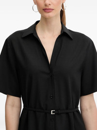 belted midi shirt dress Highlights - Black - Collared neckline - Button fastening - Short sleeves - Side slits Imported Composition Virgin Wool 100% Washing instructions Read Manufacturer Guidelines