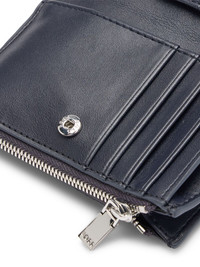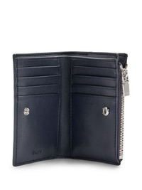 bi-fold wallet Highlights - Navy blue - Faux leather - Smooth grain - Bi-fold design - Press-stud fastening - Silver-tone logo plaque - Zip-fastening pocket - Branded zip puller - Internal card slots - Debossed internal logo - Internal note compartments Imported Composition Lining: Polyester 100% Outer: Recycled Polyurethane 62%, Polyurethane 8% SIZE & FIT Measurement DEPTH 1.18 in(3 cm) HEIGHT 3.14 in(8 cm) WIDTH 4.92 in(12.5 cm)