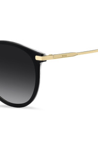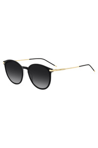 DETAILS With round frames in black acetate offset by slim golden temples, these BOSS Womenswear sunglasses add effortless style. Featuring embossed branding. Innovative lightweight construction. Front material: Acetate/steel Hinge type: Regular Size lens: 2.09 in (53 mm) (0 inches) Size bridge: 0.75 in (19 mm) (0 inch.) Temple Length: 5.5 in (140 mm) (0 inches) BOSS 1948/SEI7539O - 58609743