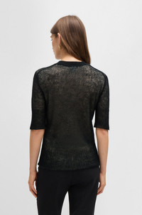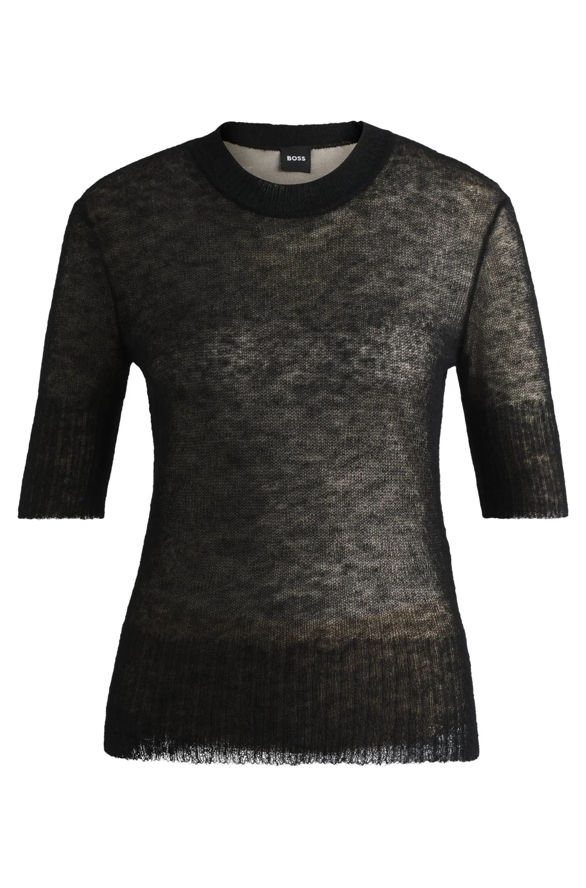 SIZE AND FIT The model wears a size S and is 5'8" tall with a, 30" chest, 23" waist and 35" hips. DETAILS Friskina - 50523754 An elegant layered sweater with cropped sleeves by BOSS. Featuring a soft underlayer, this piece is knitted in a fine textured-wool blend. Regular fit Neckline: Crew neck Short sleeves QUALITY & CARE INSTRUCTIONS Reduced Dry Clean Do Not Bleach Quality: 52% Mohair, 35% Polyamide, 13% Wool, lower part: 83% materialcode.RVI, 15% Polyamid, 2% Elastane Do Not Tumble Dry Hand Wash Only Iron Low Heat