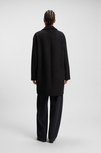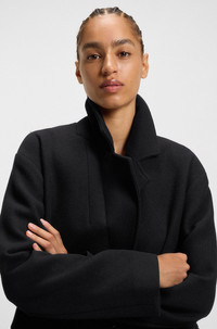 SIZE AND FIT The model wears a size 4 and is 5'9" tall with a, 32" chest, 23" waist and 35" hips. DETAILS With a subtle twill structure, this BOSS Womenswear coat is designed in a blazer style for any occasion. Blended with soft wool. Logo-jacquard lining. Fit back length: 90 cm (35 inches) C_Calesara2 - 50548660 QUALITY & CARE INSTRUCTIONS Iron Low Heat Do Not Tumble Dry Material: 50% Wool, 50% Polyester, Lining: 55% Polyester, 45% Viscose Do Not Bleach Do Not Wash Reduced Dry Clean