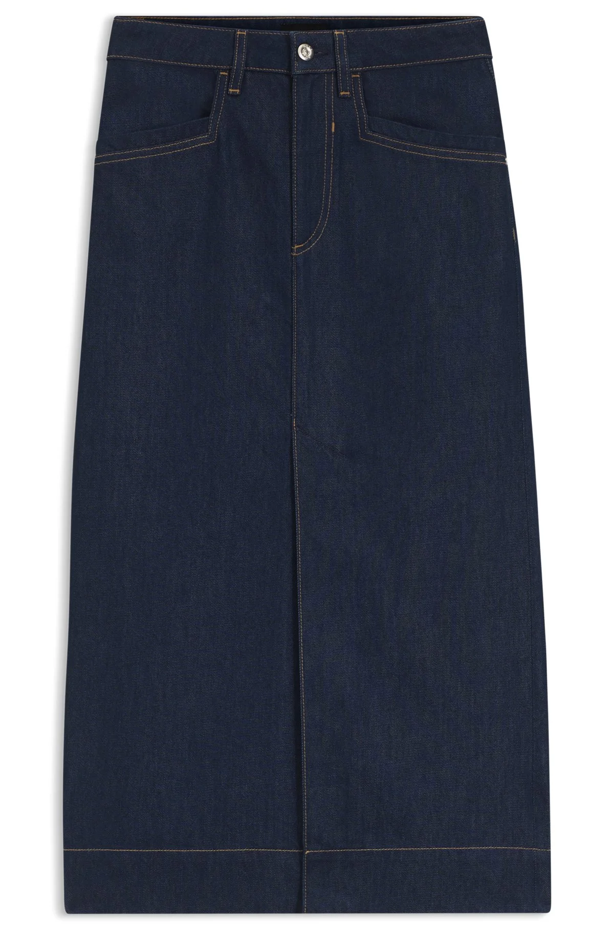 SIZE AND FIT The model wears a size 4 and is 5'10" tall with a, 33" chest, 23" waist and 34" hips. DETAILS With its clean indigo wash and straight fit, this BOSS Womenswear midi skirt is an everyday must. Rigid denim with tobacco stitching for authenticity. Regular fit Regular rise Button and zip closure Pockets bottom front: Side pockets Pockets bottom back: Patch pocket Front slit Standard length ANDREYA - 50552446 QUALITY & CARE INSTRUCTIONS Do Not Bleach Iron Medium Heat Do Not Tumble Dry Do Not Dry Clean Machine Wash Cold Gentle Material: 64% Cotton, 36% Lyocell