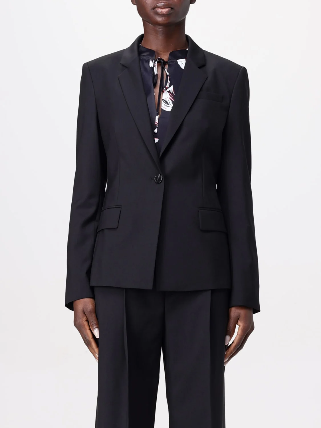 DESCRIPTION - Style: Formal - Model: Single-breasted - Neckline: V neckline - Shoulders: Regular - Sleeves: Long - Bottom: With back slit - Neck: Lapel - Pockets: With flap - Closure: 1-button - Length: Short jackets - Materials: Virgin wool - Pattern: Plain-colored DETAILS AND CARE Composition _ SIZE AND FIT Sizes not available Size and fit Slim fit Designer code: 50543763 001 Giglio Code: G55651 Designer: Boss Collection: Boss Woman Category: Clothing Boss