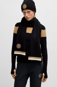 BOSS SKI VIRGIN-WOOL SCARF WITH LOGO BADGE