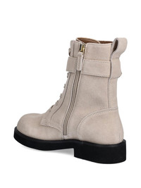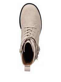 buckle lace-up boots Highlights - Light beige - Side zip fastening - Buckle-strap - Lace-up front - Pull-tab at the rear Imported Composition Outer: Calf Suede 100% Sole: Rubber 100% Lining: Calf Leather 100%, Fabric 100%