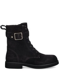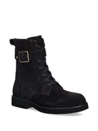 buckle lace-up combat boots Highlights - Black - Buckle-fastening strap - Lace-up detailing - Side zip fastening Imported Composition Outer: Calf Suede 100% Lining: Calf Leather 100% Sole: Rubber 100%