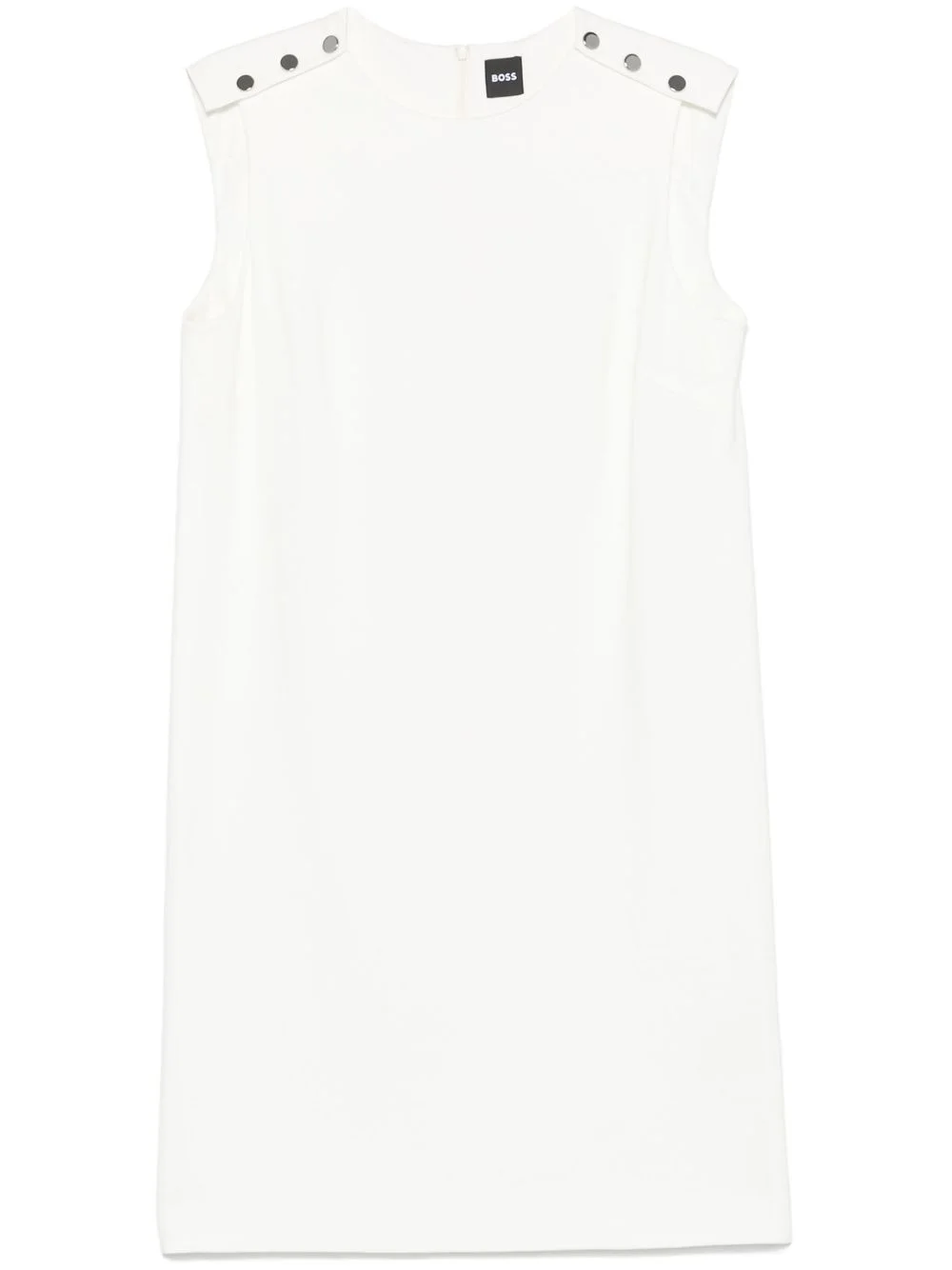 buttoned-shoulders mini dress Highlights - White - Button fastening at the shoulder - Crew neck - Sleeveless - Straight hem Imported Composition Viscose 65%, Polyamide 30%, Elastane 5%