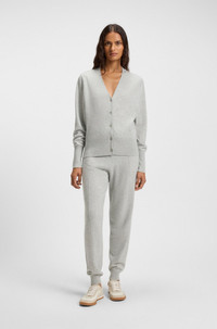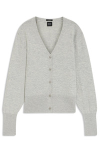 SIZE AND FIT The model wears a size S and is 5'10" tall with a, 33" chest, 23" waist and 34" hips. DETAILS Layer with luxury in the cashmere knit of this BOSS Womenswear cardigan. Cut to a laid-back fit with cashmere-blend ribbed trims. Button closure Relaxed fit Neckline: V-neck Long sleeves Fit back length: 60 cm (24 inches) Fuvrona - 50548814 QUALITY & CARE INSTRUCTIONS Do Not Tumble Dry Do Not Bleach Material: 100% Cashmere, Ribbing: 87% Cashmere, 12% Polyamid, 1% Elastane Iron Low Heat Reduced Dry Clean Hand Wash Only