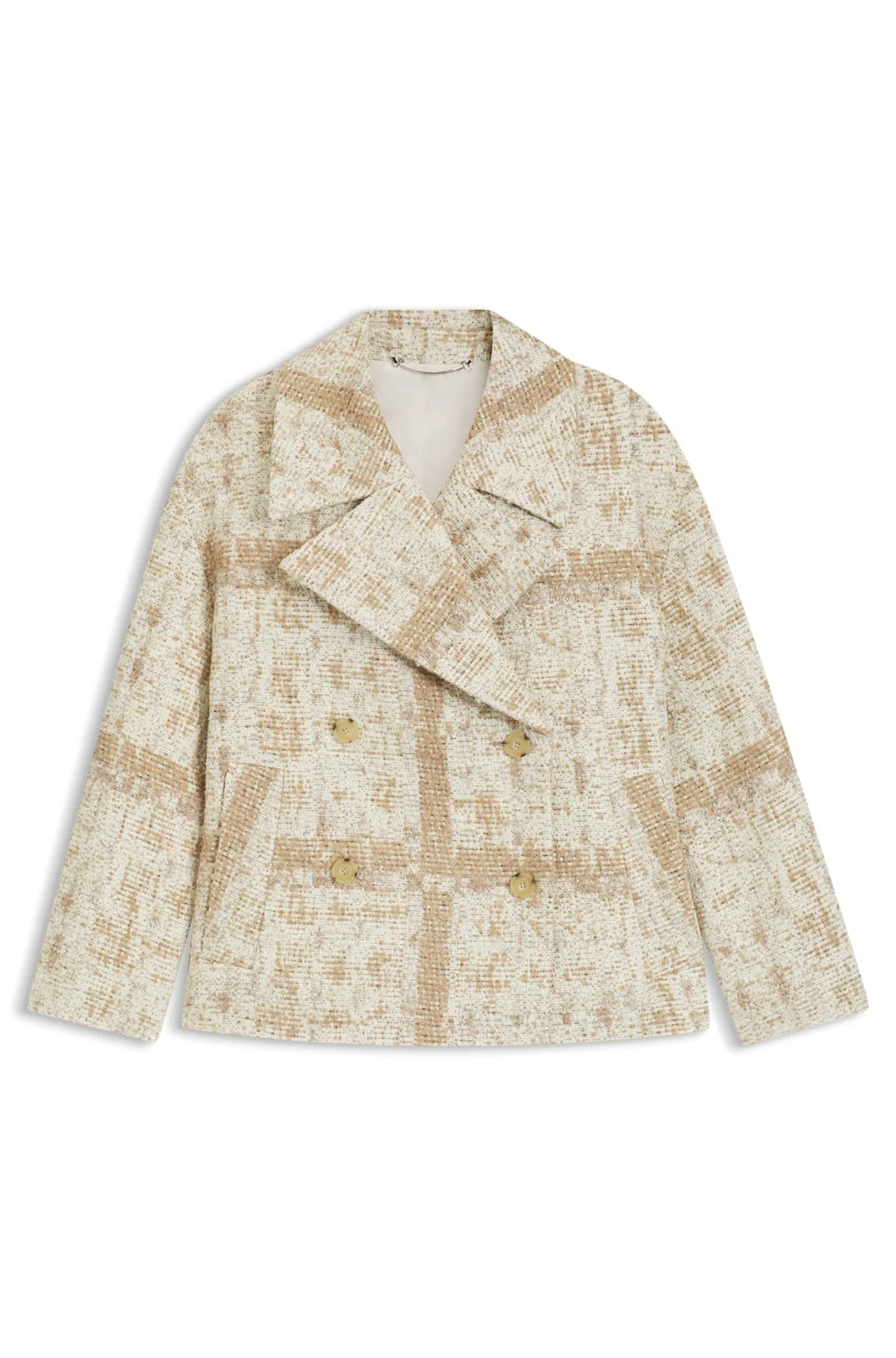 CHECK-JACQUARD COAT WITH DOUBLE-BREASTED CLOSURE