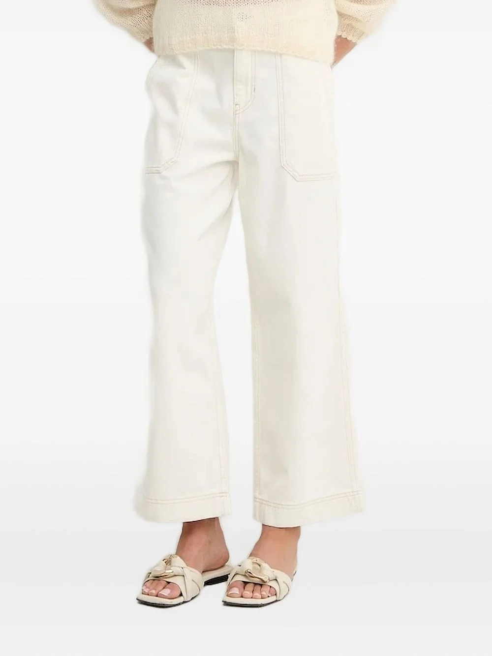 contrast-stitch jeans Highlights - Off-white - Wide leg - High waist - Button fly - Contrast stitching - Welt pockets Imported Composition Cotton 91%, Hemp 9% Washing instructions Read Manufacturer Guidelines