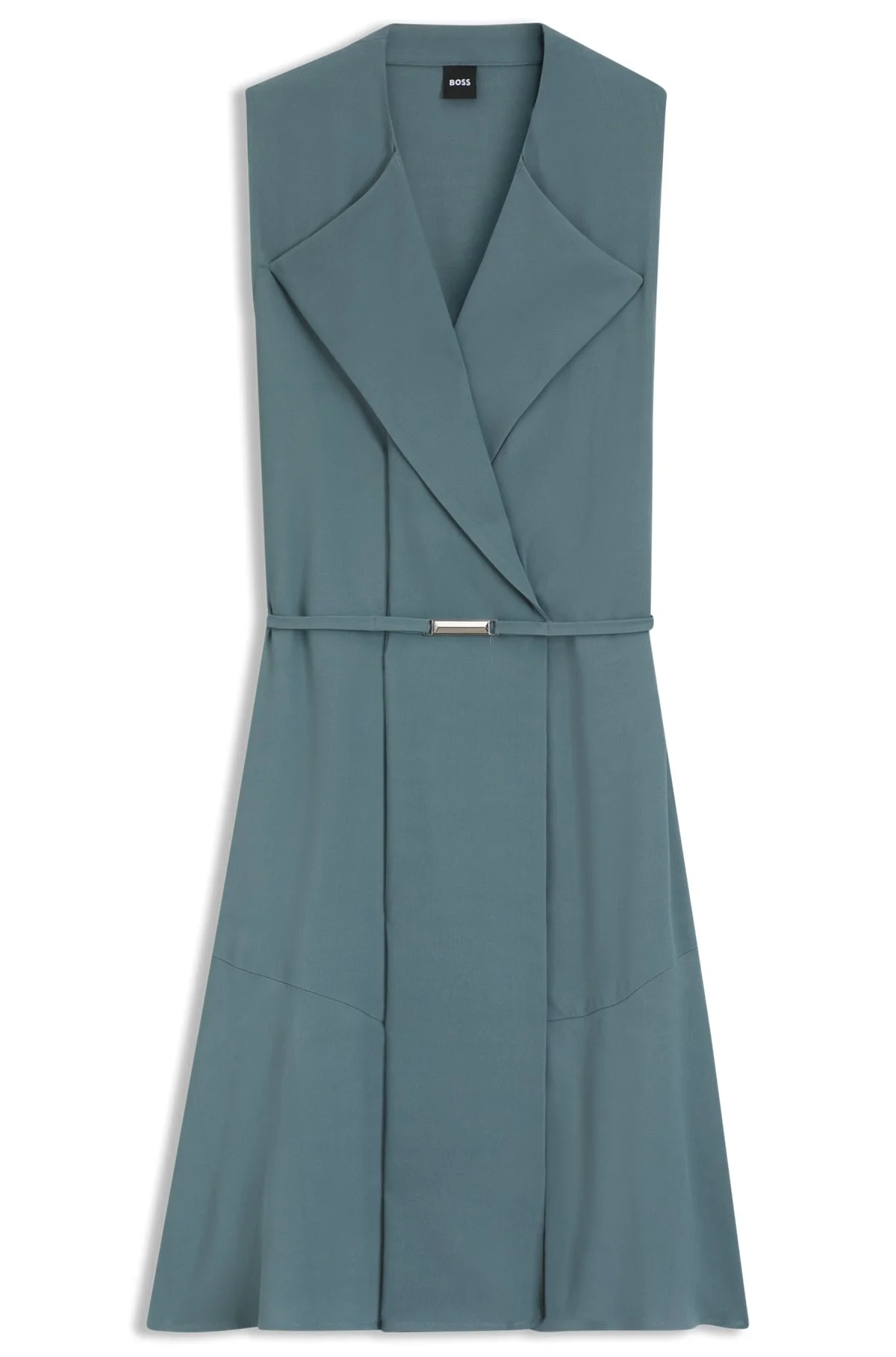 DETAILS Create effortless business looks with the wrap design of this BOSS Womenswear dress. Soft crepe with a belt and hardware trim. Regular fit Neckline: V-neck Fastening top: Belted closure Sleeveless Front vent Fit back length: 90 cm (35 inches) Dimosa-Mini - 50554224 QUALITY & CARE INSTRUCTIONS Material: 100% Viscose Reduced Dry Clean Do Not Bleach Do Not Tumble Dry Do Not Wash Iron Low Heat