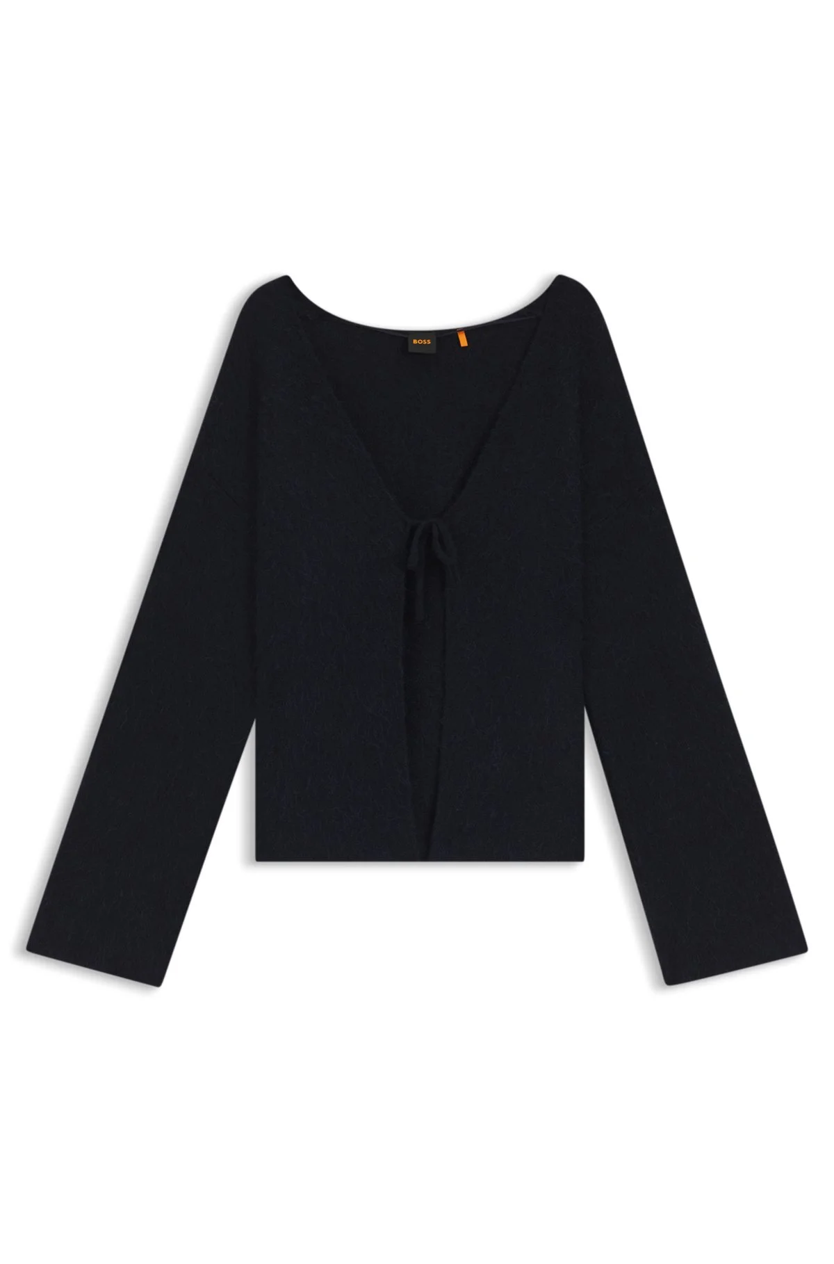 DETAILS Featuring a minimalist tie-up closure, this BOSS Womenswear cardigan is blended with wool and alpaca for a fluffy texture. Regular fit V neckline. Regular fit Neckline: V-neck Long sleeves Standard length Fit back length: 58 cm (23 inches) C_Farfal - 50548954 QUALITY & CARE INSTRUCTIONS Material: 21% Alpaca, 58% Polyamid, 21% Wool Iron Low Heat Do Not Tumble Dry Do Not Bleach Hand Wash Only Reduced Dry Clean