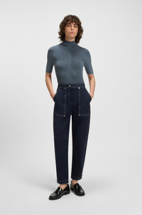 SIZE AND FIT The model wears a size S and is 5'9" tall with a, 31" chest, 24" waist and 35" hips. DETAILS Faleri - 50542885 Knitted in soft merino wool for shape retention and natural breathability, this pill-resistant BOSS Womenswear sweater is an elegant investment. Ribbed structure. Mock neckline. QUALITY & CARE INSTRUCTIONS Iron Low Heat Reduced Dry Clean Do Not Tumble Dry Hand Wash Only Quality: 100% Virgin wool Do Not Bleach