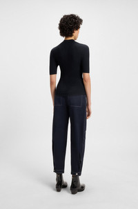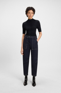 SIZE AND FIT The model wears a size S and is 5'10" tall with a, 31" chest, 24" waist and 35" hips. DETAILS Faleri - 50542885 Knitted in soft merino wool for shape retention and natural breathability, this pill-resistant BOSS Womenswear sweater is an elegant investment. Ribbed structure. Mock neckline. QUALITY & CARE INSTRUCTIONS Do Not Tumble Dry Reduced Dry Clean Quality: 100% Virgin wool Hand Wash Only Iron Low Heat Do Not Bleach
