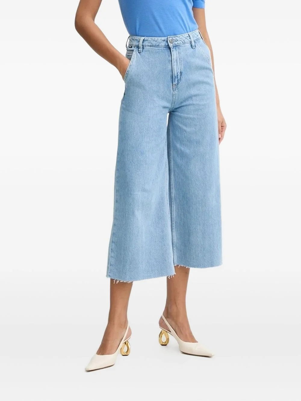 cropped raw-cut jeans Highlights - Light blue - Raw-cut hem - High waist - Classic five pockets - Button and fly fastening - Leather logo patch Imported Composition Cotton 70%, Recycled Cotton 30% Washing instructions Machine Wash