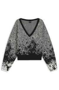 DETAILS Available with plain and patterned finishes, this BOSS Womenswear sweater is cut in stretch fabric with a modern profile. Cropped length with V neckline. Forandina - 50547870 QUALITY & CARE INSTRUCTIONS Do Not Tumble Dry Iron Low Heat Quality: 77% Viscose (55% recycled), 13% Polyamid, 8% Polyester, 2% Elastane, Ribbing: 88% materialcode.RVI, 10% Polyamid, 2% Elastane Do Not Bleach Reduced Dry Clean Hand Wash Only
