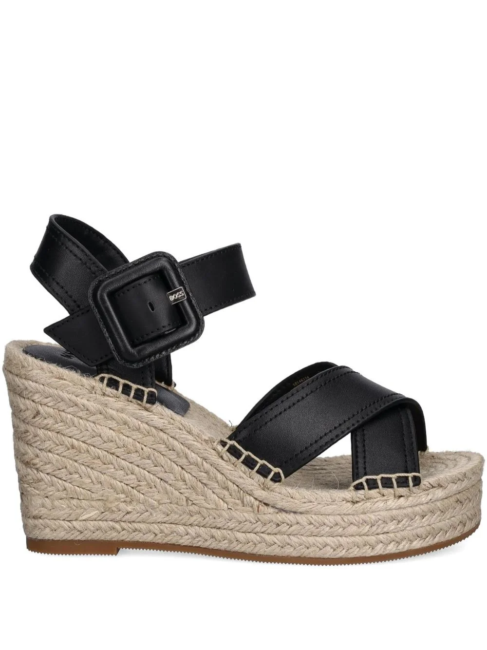 cross-strap wedge espadrilles Highlights - Black - Leather upper - Wedge sole - Buckle ankle strap - Cross-strap detail - Open toe Imported Composition Lining: Polyurethane 60%, Polyester 40% Outer: CALFSKIN 100% Sole: Rubber 100%