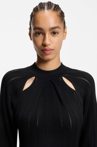 SIZE AND FIT The model wears a size S and is 5'9" tall with a, 32" chest, 23" waist and 35" hips. DETAILS With cut outs and lace stitching accentuating the upper body, this BOSS Womenswear knitted dress can be styled up or down. Flirty skater-style silhouette. Regular fit No vent Unlined Fit back length: 87 cm (34 inches) Fuccia - 50547906 QUALITY & CARE INSTRUCTIONS Do Not Bleach Dry Clean Only Do Not Tumble Dry Material: 76% Viscose, 24% Polyamid Iron Low Heat Hand Wash Only