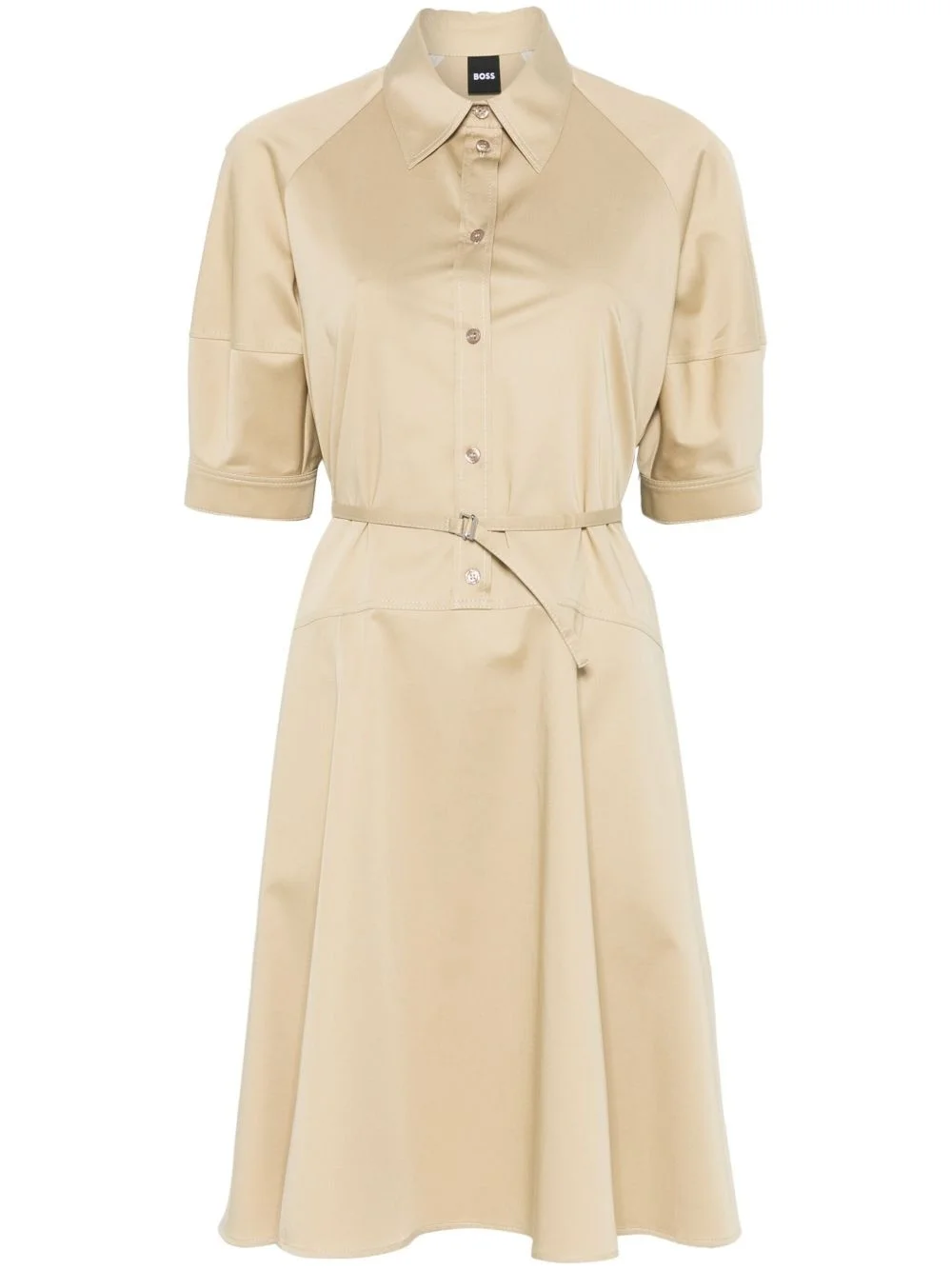 Delaurena mini dress Highlights - Beige - Front button placket - Buttoned cuffs - Detachable and adjustable waist belt - Two side slit pockets Imported Composition Lining: Viscose 64%, Polyester 36% Outer: Cotton 96%, Spandex/Elastane 4% Washing instructions Dry Clean Only