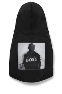 DETAILS Dog Khaby Hoodie - B2FDAH999 A cotton dog hoodie by BOSS with a double-layered hood, fleece lining and artwork inspired by the capsule collection with creator Khaby Lame. Measurements: XS fits dogs 23-27cm long, chest 33-37cm, neck 26-29cm (Chihuahua) S fits dogs 28-32cm long, chest 38-42cm, neck 31-34cm (small Terrier) M fits dogs 36-40cm long, chest 48-52cm, neck 36-39cm (Pug) L fits dogs 44-48cm long, chest 59-63cm, neck 47-50cm (Spaniel) XL fits dogs 51-55cm long, chest 69-73cm, neck 55-58cm (Border Collie) XXL fits dogs 59-63cm long, chest 84-88cm, neck 63-66cm (Labrador) QUALITY & CARE INSTRUCTIONS Do Not Bleach Do Not Tumble Dry Machine Wash Cold Wash Quality: 100% Cotton Do Not Dry Clean Iron Low Heat