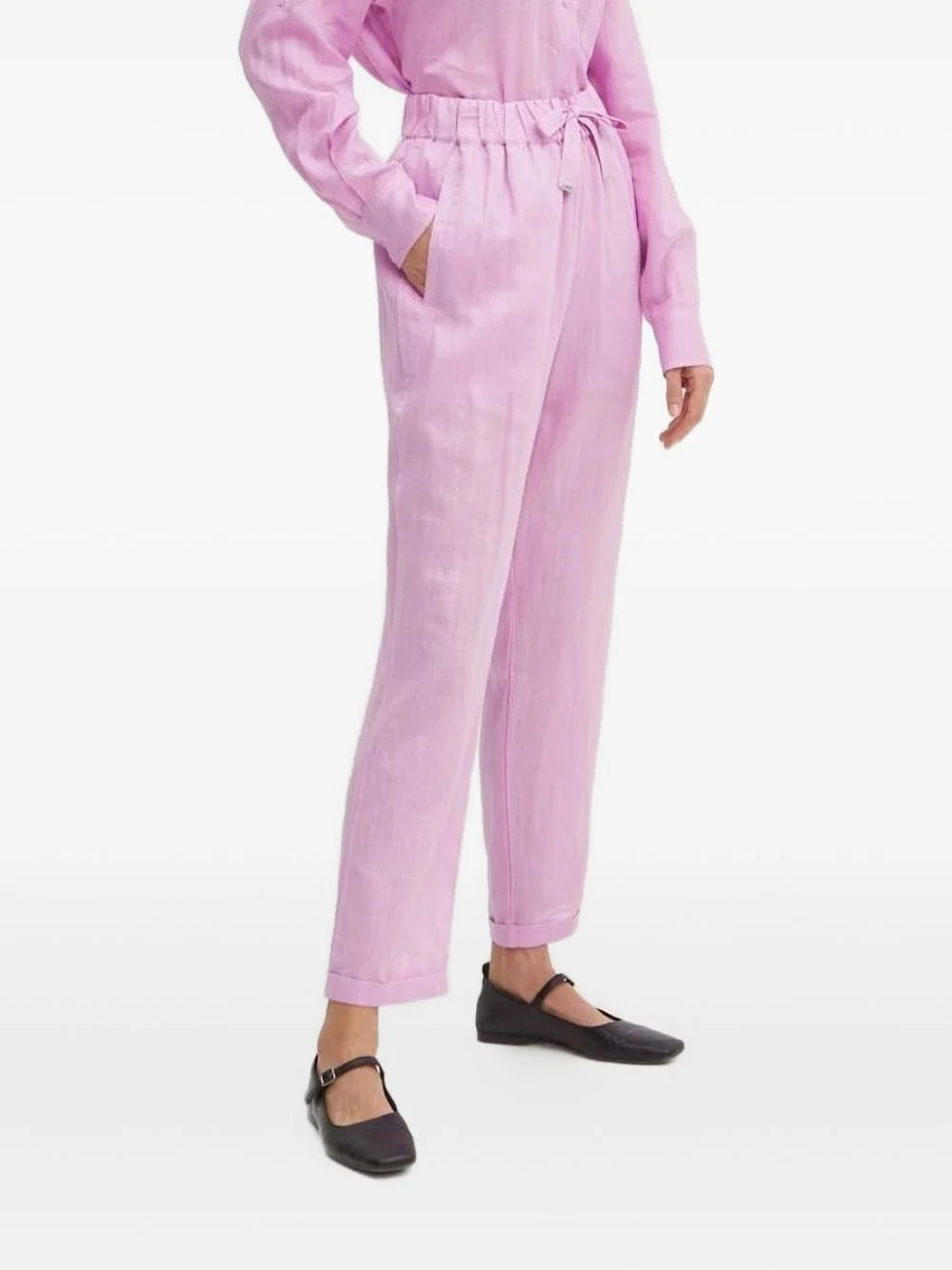 drawstring cotton trousers Highlights - Bubblegum pink - Cotton - Drawstring waistband - Cuffed hem Imported Composition Cotton 100% Washing instructions Read Manufacturer Guidelines