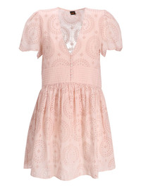 embroidered short-sleeve dress Highlights - Blush pink - Intricate embroidery - Button placket - Gathered skirt - Short sleeves Imported Composition Cotton 100% Washing instructions Read Manufacturer Guidelines