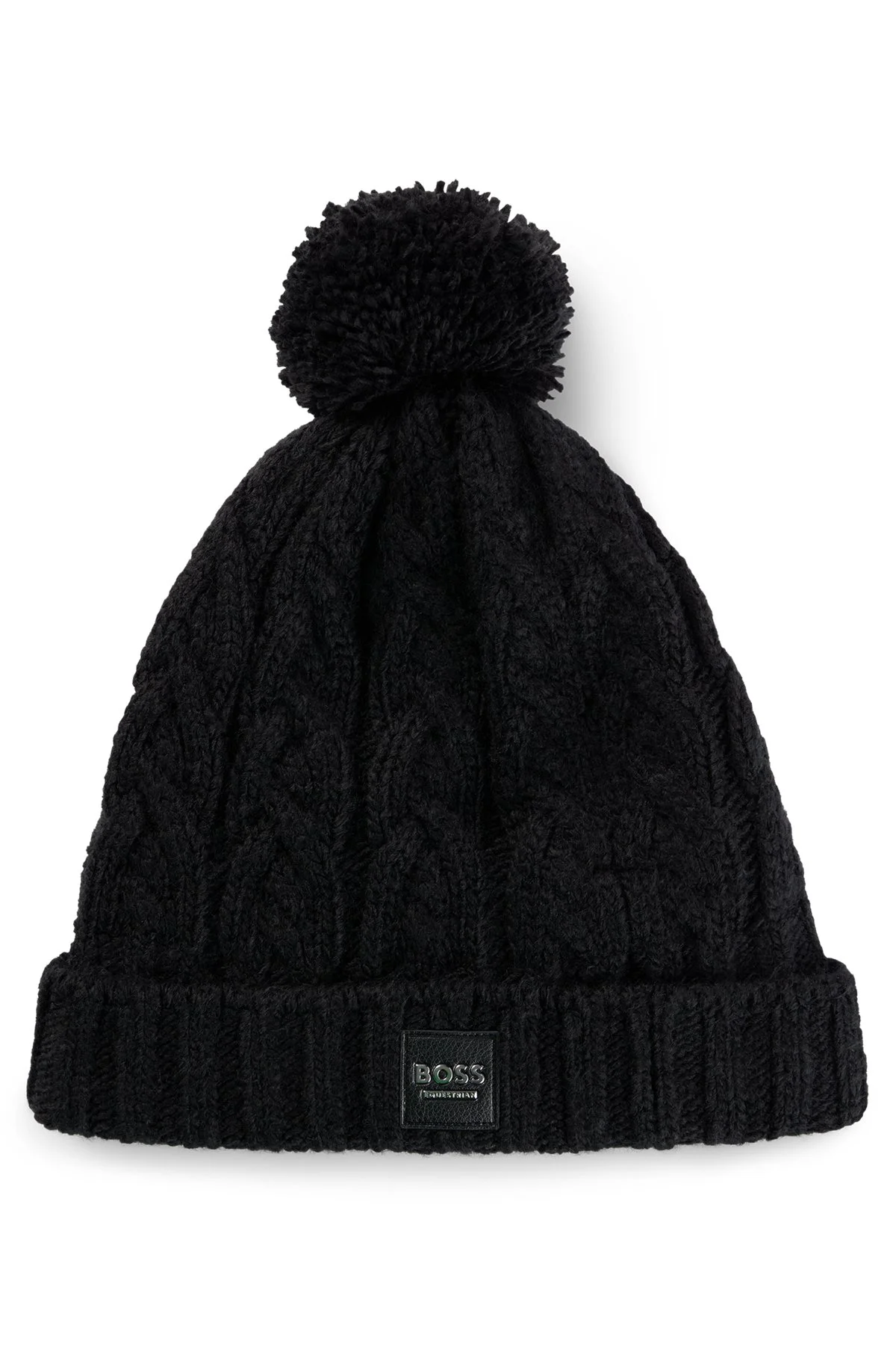 SIZE AND FIT The model wears a size pce. and is 5'10" tall with a, 32" chest, 23" waist and 35" hips. DETAILS A cozy beanie hat by BOSS Menswear. Topped with a bobble, this beanie hat has a cable-knit structure and a BOSS logo badge on the hem. The interior features fleece for extra warmth. BEANIE BOBBLE - B4U1701 QUALITY & CARE INSTRUCTIONS Machine Wash Cold Gentle Do Not Iron Do Not Tumble Dry Quality: 100% Acetate Do Not Bleach Do Not Dry Clean