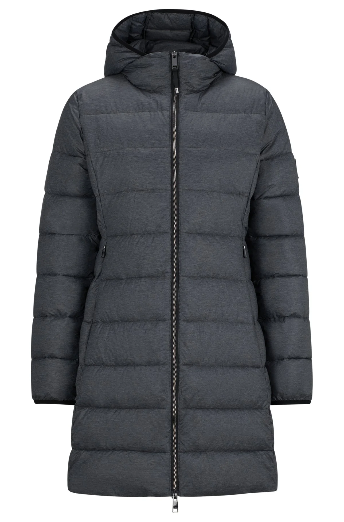 SIZE AND FIT The model wears a size S and is 5'10" tall with a, 32" chest, 23" waist and 35" hips. DETAILS A windproof, waterproof equestrian puffer jacket by BOSS Womenswear. Designed for ultra-lightweight warmth, this puffer jacket features side zips so that the mid-length silhouette can be adjusted for enhanced comfort in the saddle. Fleece-lined pockets and a high, hooded neck add further functionality to this piece. VESPA PUFFER PARKA - B4W1402 QUALITY & CARE INSTRUCTIONS Do Not Dry Clean Do Not Tumble Dry Material: 100% Polyamid Do Not Iron Do Not Bleach Machine Wash Cold Gentle