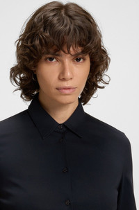 SIZE AND FIT The model wears a size 4 and is 5'9" tall with a, 31" chest, 24" waist and 35" hips. DETAILS Bronta_Tuesday - 50543691 With an extra-slim fit and shaping darts, this BOSS Womenswear blouse creates a modern silhouette. Woven in naturally breathable cotton. Point collar. Barrel cuffs. Extra-slim fit Point collar Long sleeves Barrel cuffs Fit back length: 60 cm (24 inches) QUALITY & CARE INSTRUCTIONS Do Not Tumble Dry Machine Wash Cold Gentle Quality: 100% Cotton mild professional wet clean Iron Low Heat Do Not Bleach Do Not Dry Clean
