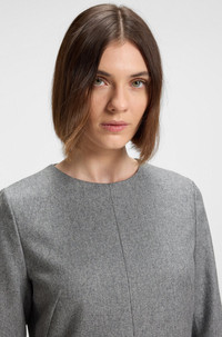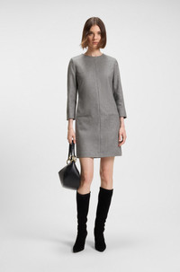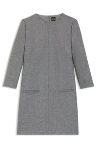 DETAILS Create effortless business looks with the soft flannel of this BOSS Womenswear dress. Blended with wool. Welt pockets and slit cuffs. Regular fit Neckline: Crew neck Fastening top: Zip closure Long sleeves Slit cuffs Pockets top: Welt pockets Partially lined Fit back length: 88 cm (35 inches) Dinderan - 50555416 QUALITY & CARE INSTRUCTIONS Iron Low Heat Do Not Tumble Dry Do Not Bleach Do Not Wash Material: 44% Wool, 35% Lyocell, 21% Polyamid, Lining: 55% Polyester, 45% Viscose Reduced Dry Clean