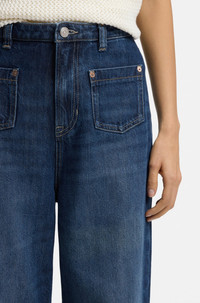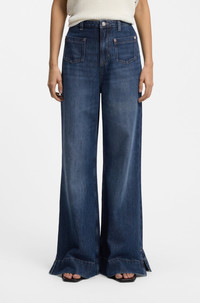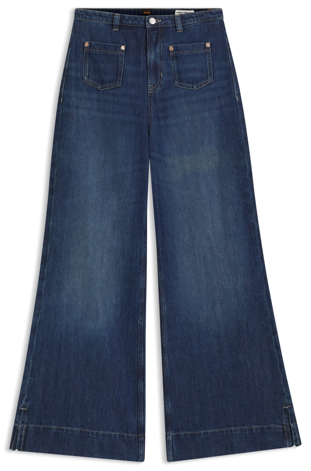 SIZE AND FIT The model wears a size 27/32 and is 5'9" tall with a, 32" chest, 23" waist and 33" hips. DETAILS With mini front patched pockets and a wide, flared leg, these BOSS Womenswear jeans have a 70s-inspired look. Blue denim. flared fit High rise Button and zip closure Pockets bottom front: Patch pocket Wide leg Pockets bottom back: Patch pocket Open length C_MARLENE FLR HR - 50558695 QUALITY & CARE INSTRUCTIONS Material: 53% Cotton, 34% Lyocell, 13% Other fibres Do Not Dry Clean Machine Wash Cold Gentle Do Not Bleach Do Not Tumble Dry Iron Medium Heat