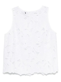 floral-embroidered blouse Highlights - White - Rear button fastening - Round neck - Sleeveless Imported Composition Outer: Cotton 51%, Polyester 49% Lining: Cotton 100% Washing instructions Machine Wash