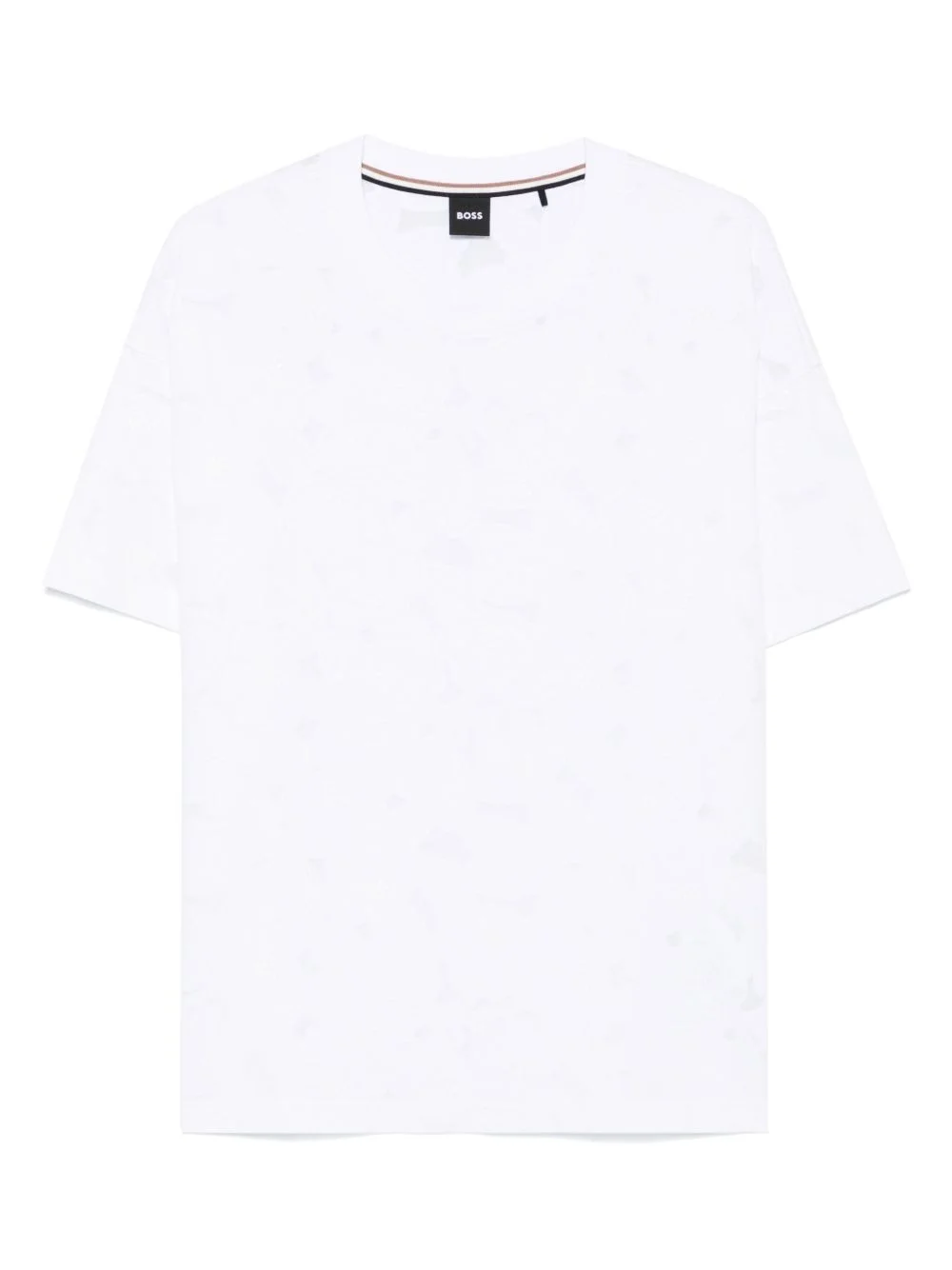 floral-jacquard T-shirt Highlights - White - Crew neck - Drop shoulder - Short sleeves Imported Composition Polyester 50%, Cotton 50% Washing instructions Machine Wash