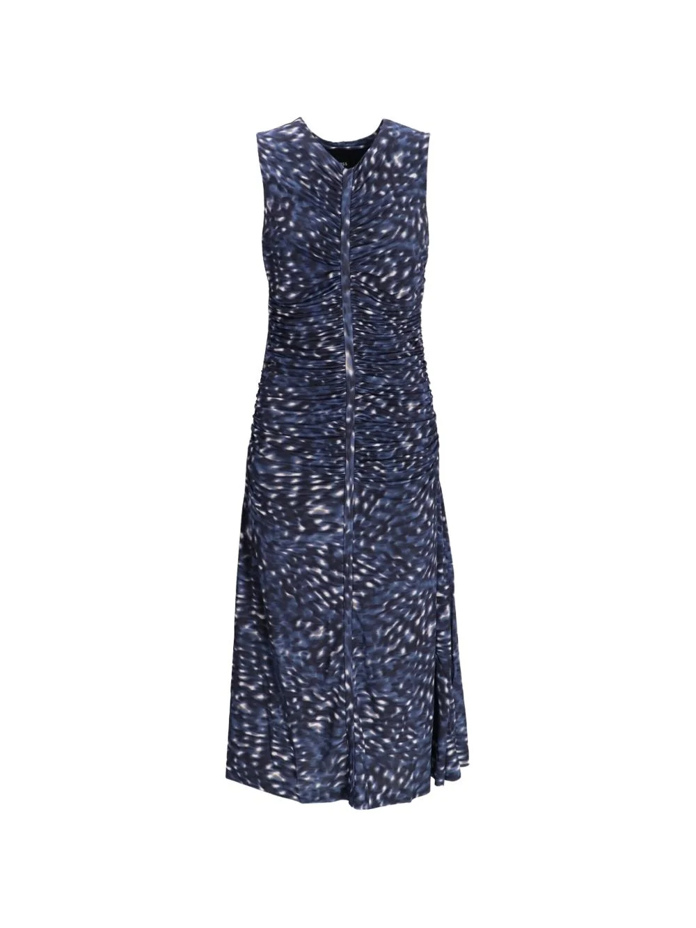 gathered printed design dress Highlights - Navy blue - Printed design - Zip fastening - Round neck - Gathered detail Imported Composition Fabric 100% Washing instructions Read Manufacturer Guidelines