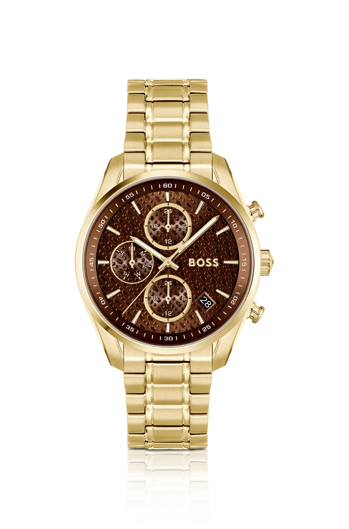 GOLD-TONE WATCH WITH MONOGRAM-TEXTURED DIAL