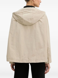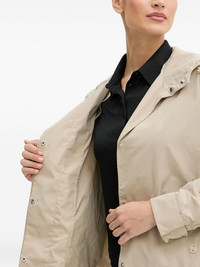 hooded snap-button jacket Highlights - Beige - Concealed popper fastening - Hooded neckline - Long sleeves - Straight hemline Imported Composition Outer: Polyester 100% Lining: Polyamide 100% Washing instructions Read Manufacturer Guidelines