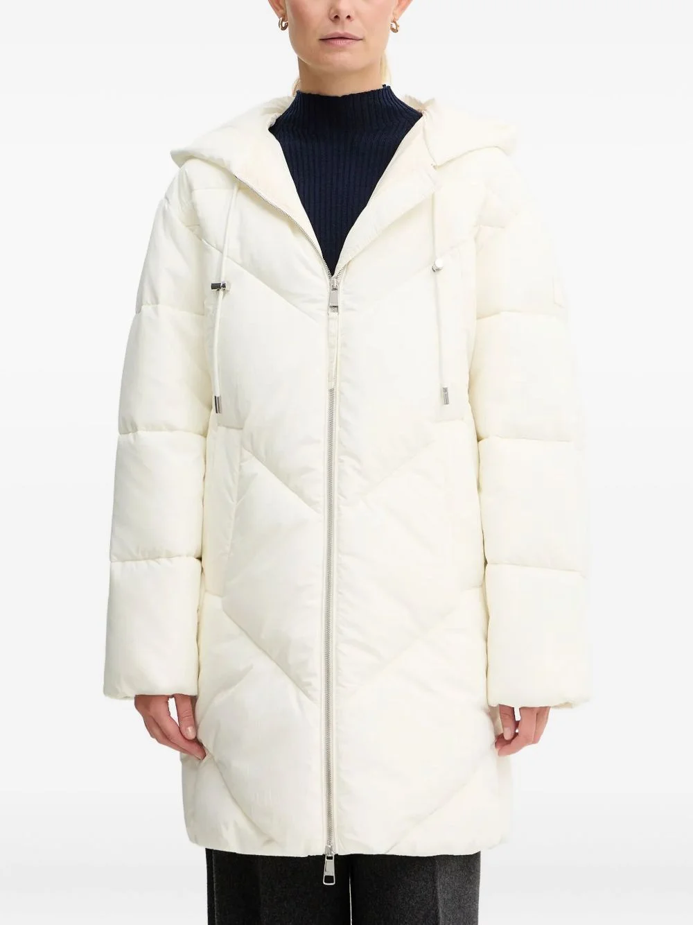 hooded zip puffer jacket Highlights - Off-white - Padded - Hooded neckline - Zip fastening Imported Composition Fabric 100% Washing instructions Read Manufacturer Guidelines