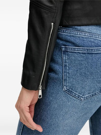 zip leather jacket Highlights - Black - Zip fastening - Round neck - Long sleeves - Zip detail at the cuffs - Panelled design Imported Composition Calf Leather 100% Washing instructions Read Manufacturer Guidelines