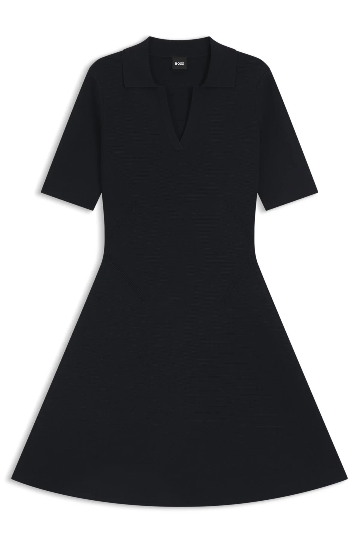 DETAILS Felita - 50542876 A fresh daywear choice, this BOSS Womenswear dress is topped with a cleanly styled skipper collar. Knitted details accentuate the waist. Soft yarn for comfort. Fit back length: 90 cm (35 inches) QUALITY & CARE INSTRUCTIONS Hand Wash Only Dry Clean Only Do Not Tumble Dry Iron Low Heat Do Not Bleach Quality: 76% Viscose, 24% Polyamid