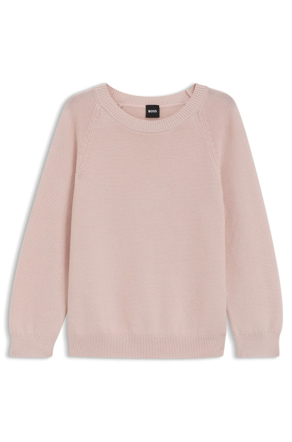 SIZE AND FIT The model wears a size S and is 5'10" tall with a, 31" chest, 24" waist and 34" hips. DETAILS Fovila - 50540213 Knitted in cotton for comfort against the skin, this BOSS Womenswear sweater features detailed links at the shoulders. Ribbed trims for shape recovery. Relaxed fit Relaxed fit Neckline: Crew neck Long sleeves QUALITY & CARE INSTRUCTIONS Hand Wash Only Quality: 100% Cotton Dry Clean Only Do Not Tumble Dry Do Not Bleach Iron Low Heat