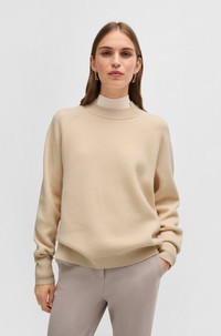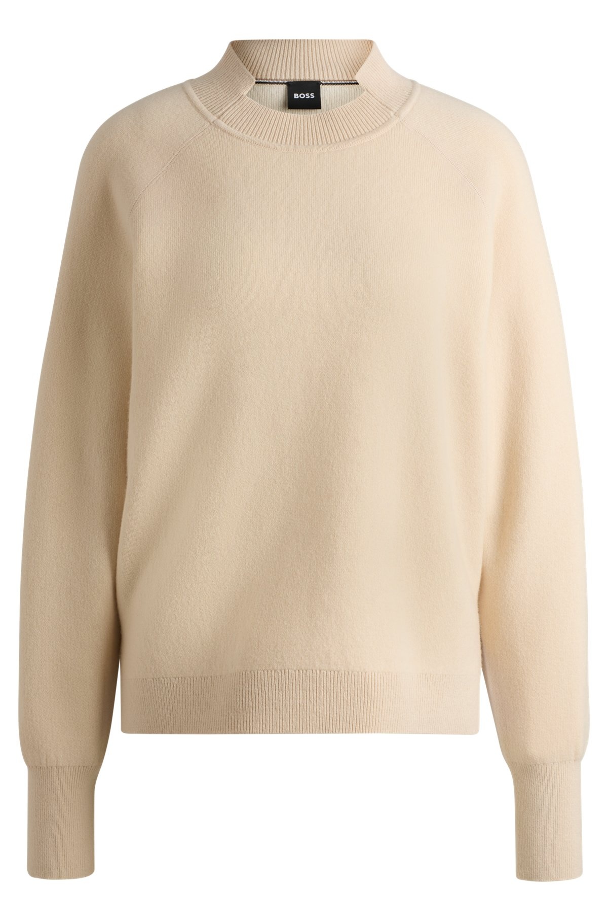 SIZE AND FIT The model wears a size S and is 5'8" tall with a, 30" chest, 23" waist and 35" hips. DETAILS Fariola - 50523735 A super-soft and breathable sweater by BOSS. Topped with a detailed collar, this versatile piece is blended with cashmere for a luxe touch. Neckline: Crew neck Long sleeves QUALITY & CARE INSTRUCTIONS Hand Wash Only Do Not Tumble Dry Do Not Bleach Quality: 90% Virgin wool, 10% Cashmere Iron Low Heat Do Not Dry Clean