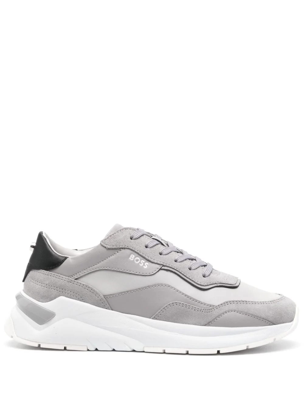 lace-up leather sneakers Highlights - Grey/white - Calf leather - Panelled design - Logo-embossed tongue - Embroidered logo to the side - Contrasting heel counter - Front lace-up fastening - Round toe - Branded insole - Ridged rubber sole Imported Composition Leather 100% SIZE & FIT Measurement HEEL 1.37 in(3.5 cm) Sole height 0.78 in(2 cm)