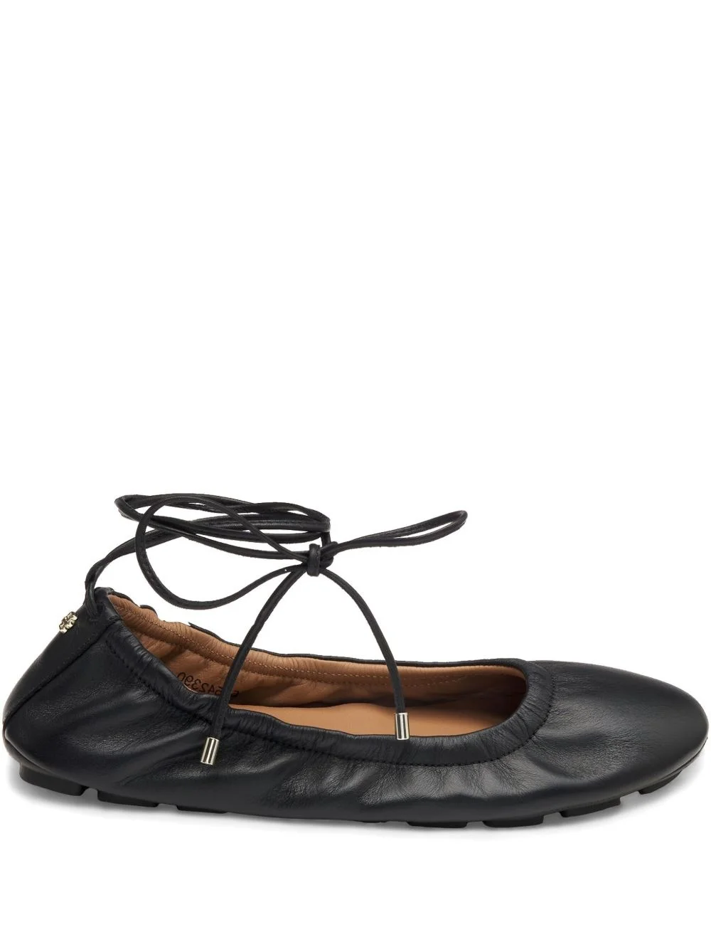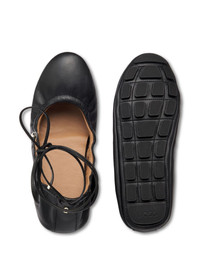 leather ballerina shoes Highlights - Black - Round toe - Tie-fastening straps - Flat sole Imported Composition Sole: Rubber 100% Outer: Calf Leather 100% Lining: Calf Leather 100%