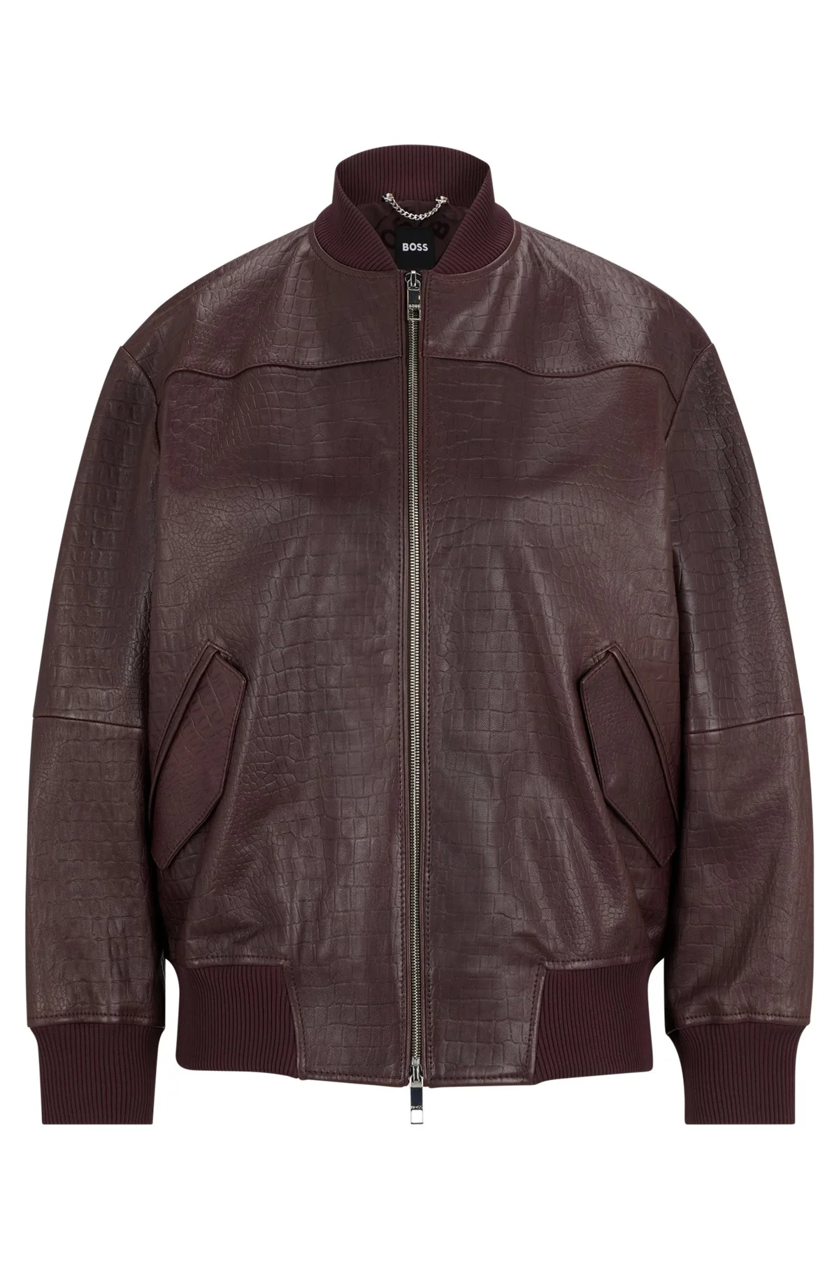 LEATHER BOMBER JACKET WITH EMBOSSED CROCODILE MOTIF