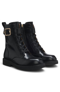 DETAILS Add a modern statement to any look with the brush-off leather of these BOSS Womenswear boots. Double B monogram trim on the buckled strap. Fastening top: Slip-on Laces Sole: Other material Packaging: Box Eleri_LUBootie_BOBK - 50552772 QUALITY & CARE INSTRUCTIONS Upper material: 100% Cow leather, Lining: 100% Polyester, 50% Polyurethane, 100% Cow leather, 50% Polyester, Sole: 100% Ethylene vinyl acetate, Innersole: 100% Cow leather