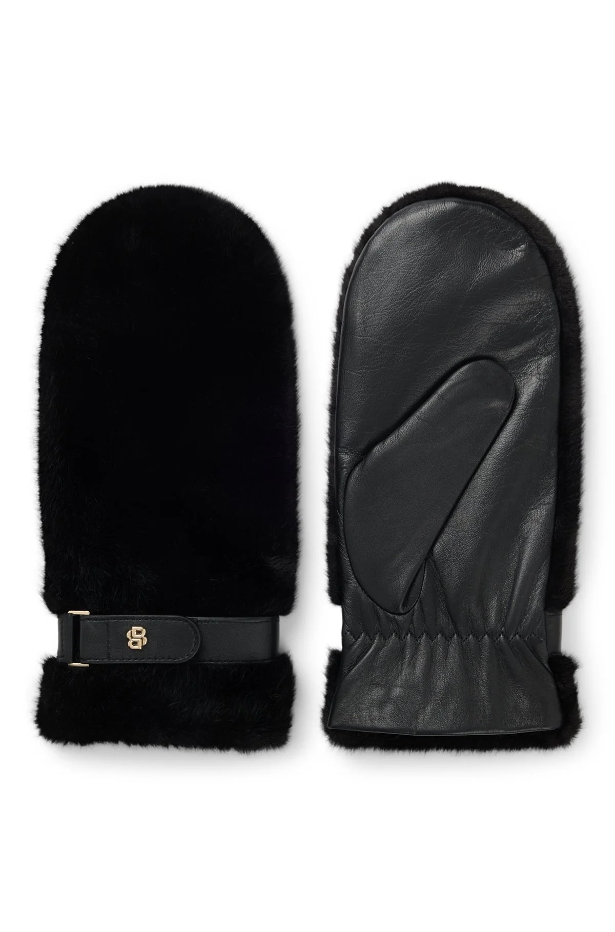 DETAILS Combining plush faux fur and supple leather, these BOSS Womenswear mittens make a chic winter statement. Double B monogram rivet. Strap detail. Yosie-F - 50551632 QUALITY & CARE INSTRUCTIONS Material: 100% Lamb leather, Lining: 100% Polyester, Front panel: 100% Polyester Do Not Bleach Do Not Wash Do Not Tumble Dry Do Not Dry Clean Do Not Iron