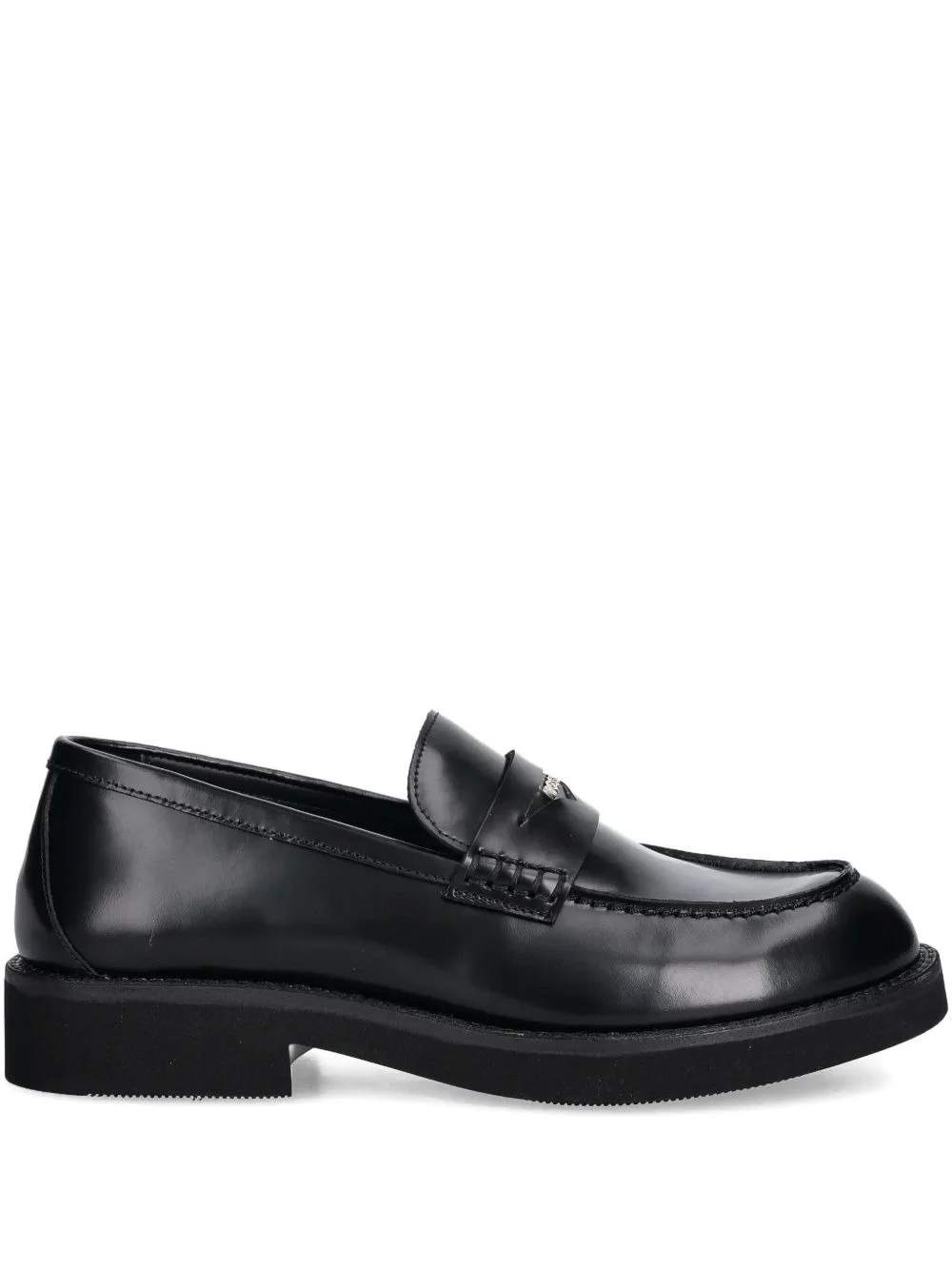 leather penny loafers Highlights - Black - Leather upper - Penny strap - Flat sole - Round toe - Moc toe stitching Imported Composition Sole: Calf Leather 100% Outer: Calf Leather 100% Lining: Calf Leather 100%
